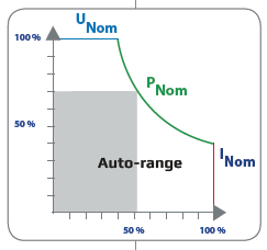 本系列所有型號(hào)的輸出功率都可靈活調(diào) 整??稍谳^低電流時(shí)輸出較高電壓,或 在低電壓時(shí)輸出較高電流,但總是維持 在最大額定功率范圍內(nèi)。它們的最大設(shè) 定功率都可調(diào),因此僅用 一臺(tái)產(chǎn)品就能 覆蓋廣泛的應(yīng)用。