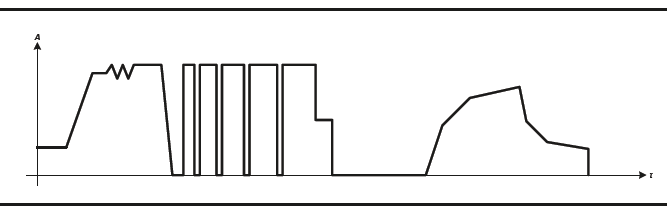 下圖是任意發(fā)生器可實(shí)現(xiàn)的由40個(gè)序列組成的復(fù)雜曲線,僅為虛構(gòu)范例。可以在產(chǎn)品外或者于產(chǎn)品上 創(chuàng)建函數(shù),然后上載或保存: